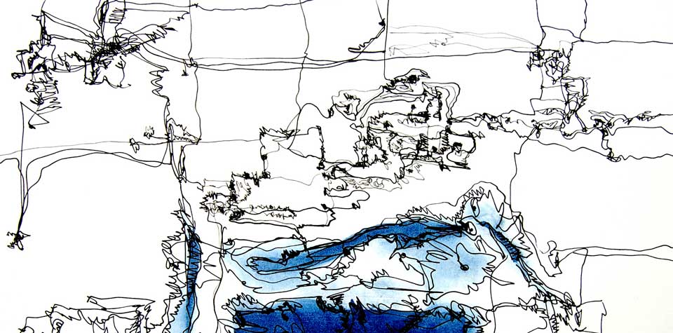 Dabei habe ich zwei für mich sehr überraschende Beobachtungen gemacht: erstens empfinde ich Farbe als störend, d.h. ein schwarzer Stift ist nicht nur völlig ausreichend, vielmehr verhält es sich sogar ähnlich, wie in der Fotografie; Farbe ist immer zumindest oberflächlich „schön“. Die s/w Fotografie hingegen erzeugt tiefe Emotionen, die man nicht unbedingt als „schön“ im herkömmlichen Sinne erleben muss.